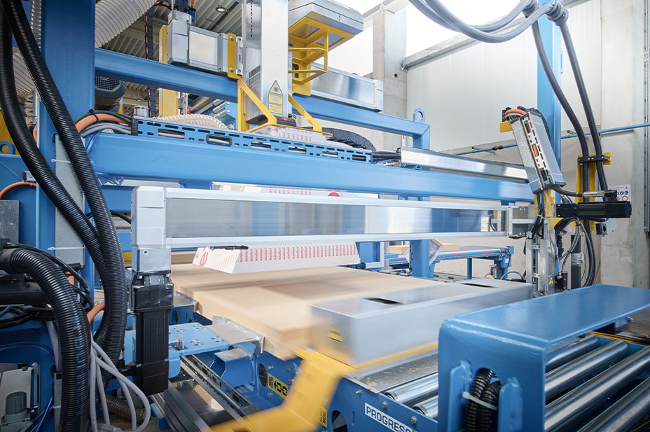 The special plant for the fully automatic processing of wood fiber insulation boards, which covers an area of around 400 square meters, has required a great deal of research and development time. EBAWE Anlagentechnik GmbH, a PROGRESS GROUP company, is a machine manufacturer for the precast concrete parts industry and, with the I-System, has developed a production line for the fully automatic processing of insulating material in just two years. The individual stations are driven by linear technology from HIWIN GmbH. A total of 13 linear tables and linear modules with belt and spindle drives, as well as over 60 linear guideways, have been installed by the drive specialist from Offenburg in the new XXL plant.