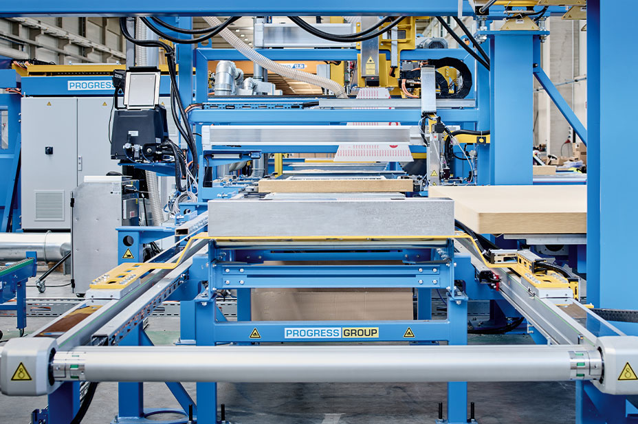 Particularly worthy of mention is the HIWIN HD double axis installed in the I-system. It serves as a transfer unit consisting of two toothed belt axes from the HM-B series and a gigantic synchronising shaft. Over a stroke of 7 meters, the double axis transports the raw panels into the processing line at 15-second intervals. The ready-to-install system impresses with an extra-long slide and high moment load capacities in the axial direction.