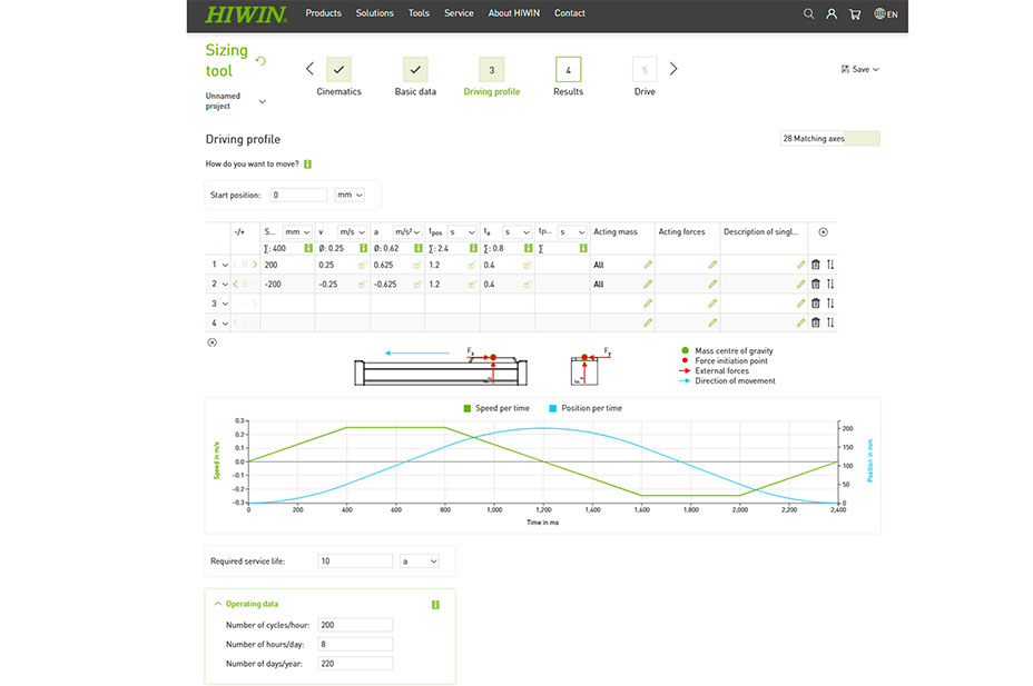 It sounds simple and it is simple: based on the application data entered, the tool determines suitable axes, which are compared with each other and displayed in a pre-selected form. “We are continuously expanding and refining our tools to give our customers the fastest and easiest access to motion technology,” says Werner Mäurer, HIWIN Managing Director.